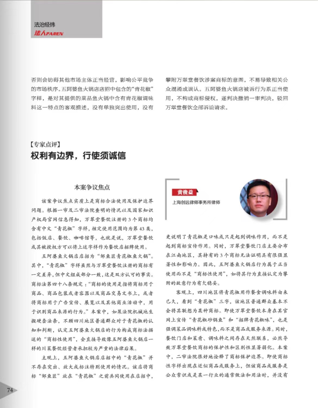 贵港辉知简讯 | 辉知队黄俊益律师应“法治日报”旗下杂志邀请,就“青花椒”案发表专家点评